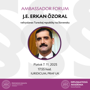 V rámci ďalšieho podujatia Ambassador Forum prijal pozvanie turecký veľvyslanec J. E. Erkan Özoral.